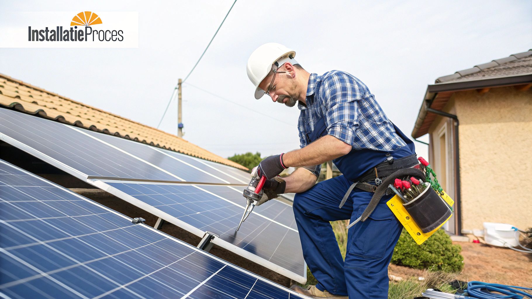 Het aantal panelen dat u nodig heeft, hangt één-op-één samen met uw jaarlijkse energieverbruik. Laten we een voorbeeld nemen: een gemiddeld Belgisch gezin dat zo'n 3.500 kWh per jaar verbruikt, heeft doorgaans genoeg aan een installatie van ongeveer 4.000 Wp. In de praktijk komt dat neer op zo'n 10 tot 12 moderne zonnepanelen.