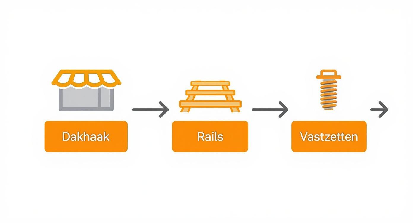 Zie het montagesysteem als de ruggengraat van uw hele zonnepaneleninstallatie. Een vakkundige montage is niet alleen een garantie voor stabiliteit voor de komende 25 jaar, maar beschermt ook uw dak tegen schade. Dit is echt precisiewerk waar veiligheid en vakmanschap samenkomen.