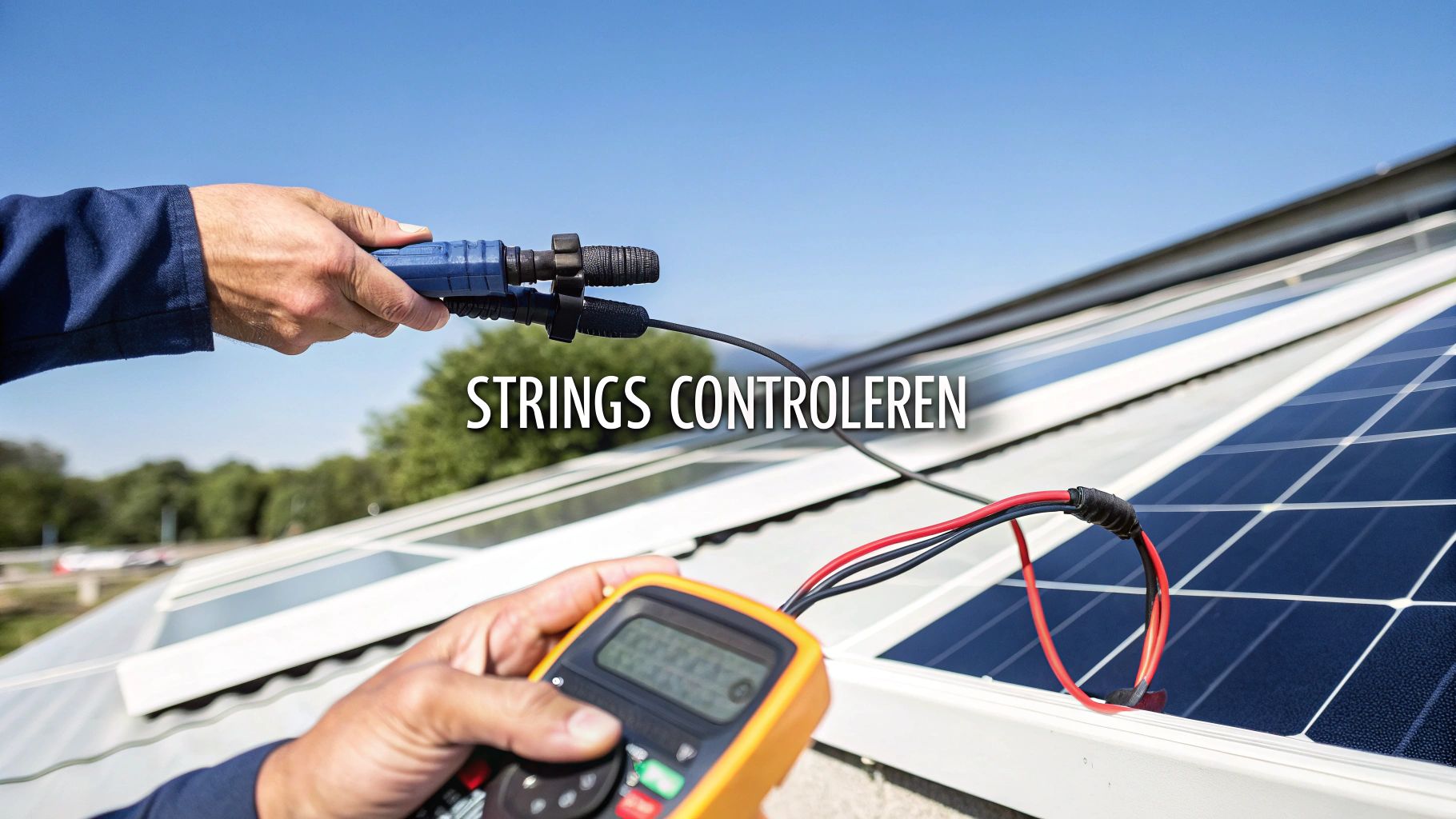 Voordat je ook maar denkt aan het inschakelen van de omvormer, is een grondige test van de strings een absolute must. Deze controle is je laatste kans om zeker te weten dat alle verbindingen kloppen en de panelen presteren zoals het hoort. Hiervoor heb je een multimeter nodig die geschikt is voor DC-spanning en -stroom.
